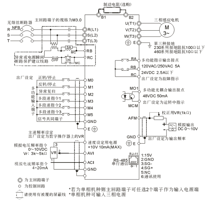 6、提供多种速度控制接口4-20Ma、0-10V、外部8段速控制、标准MODBUS 485通讯。