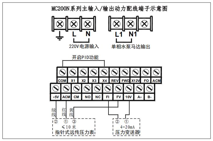 DFL200N系列恒压供水变频器,适用于单相水泵压供水用(单电容水泵,免拆电容,双电容不可用),恒压供水变频器一体机,体积小,安装方便,内置PID功能,全自动运行,设置简单,出厂默认值即可工作。